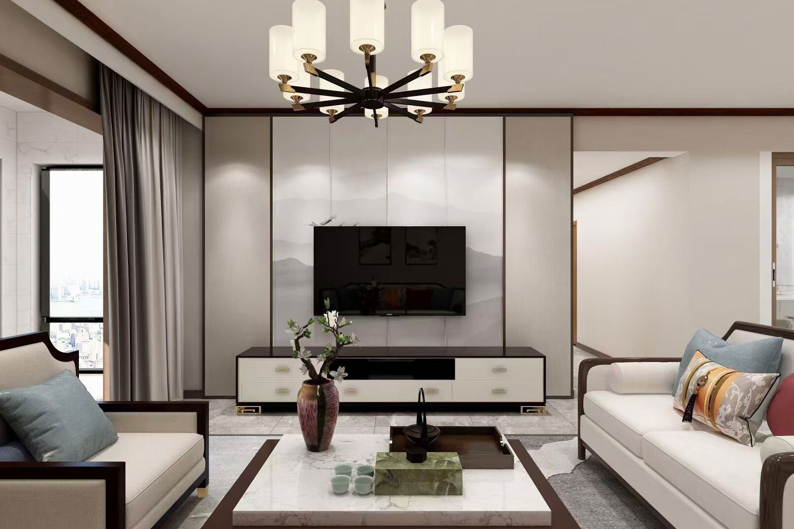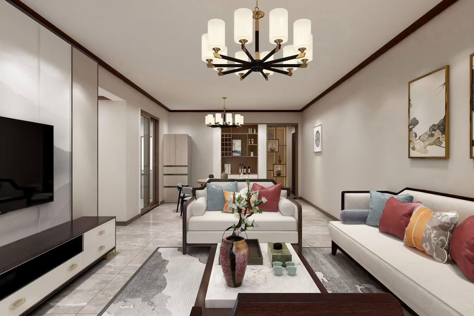 瀏覽量:563本案例總面積為148㎡,整體屬于新中式風(fēng)格,室內(nèi)空間講究主次分明、追求合理的空間布局和家具擺設(shè)。同時非常強調(diào)融入自然,并且注重人與空間的關(guān)系。提取傳統(tǒng)家居的精華元素和生活符號進行合理的搭配、布局,使整體的家居設(shè)計中既有中式家居的傳統(tǒng)韻味,又能夠讓傳統(tǒng)元素更具筒練、大氣、時尚的特點。