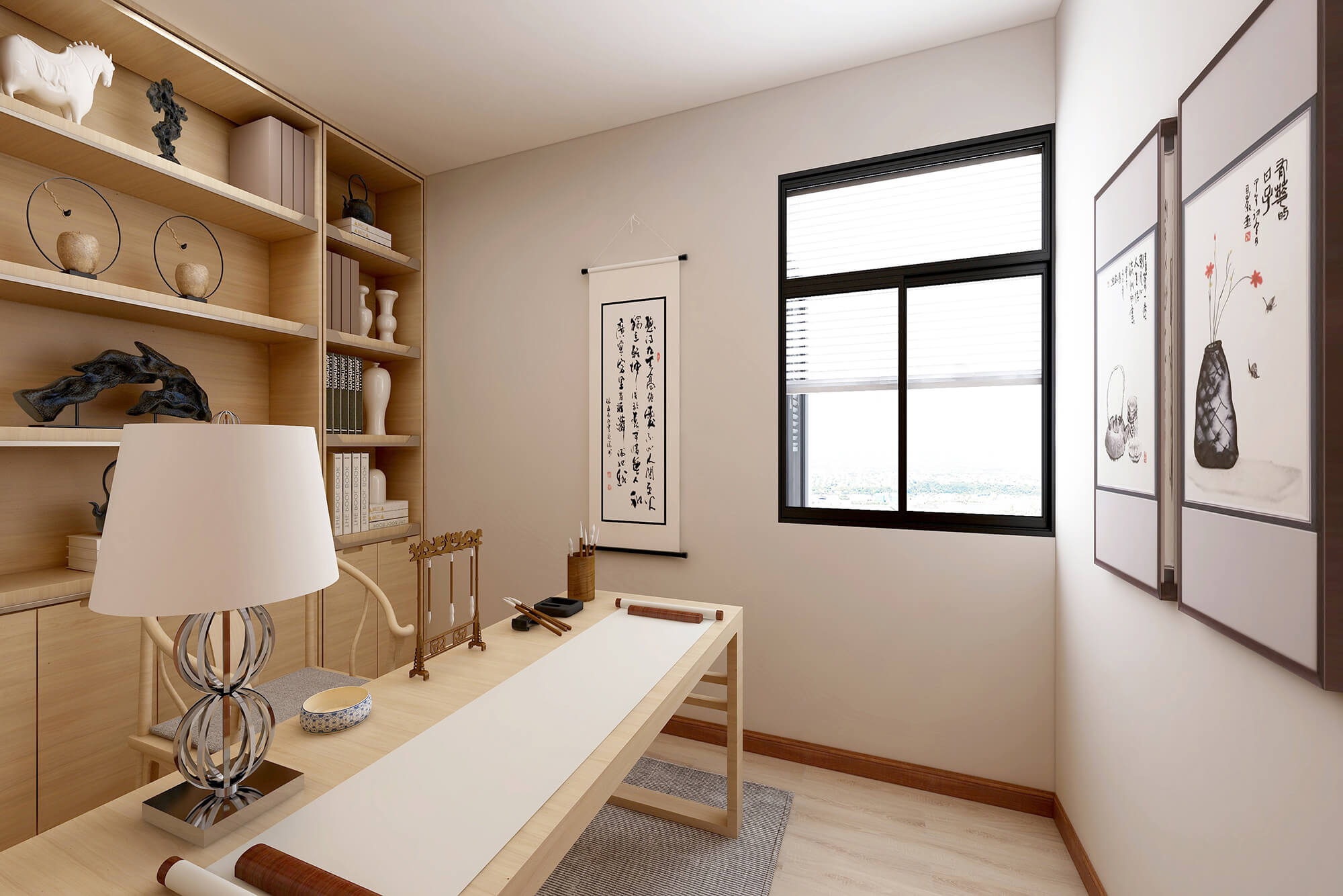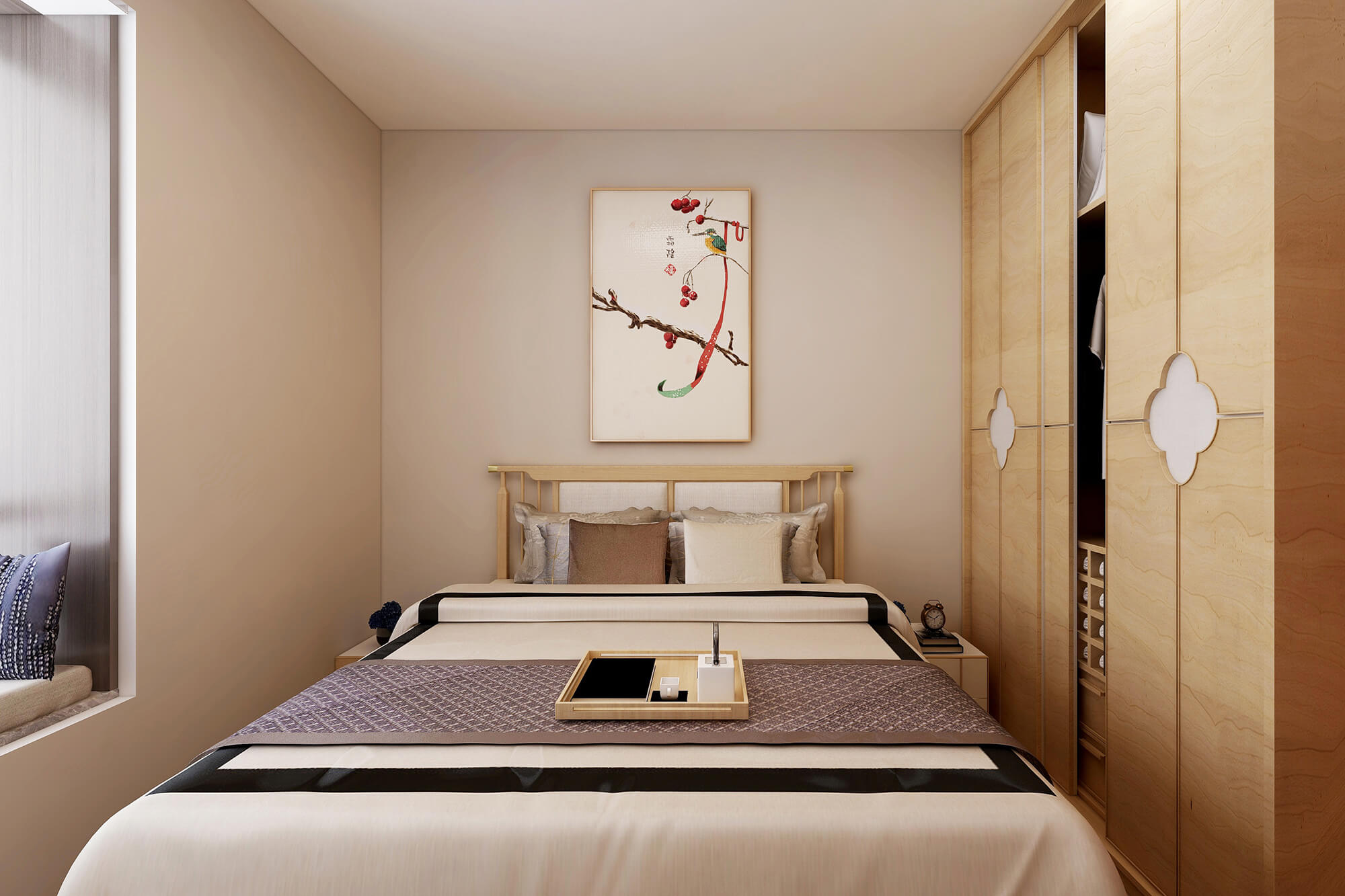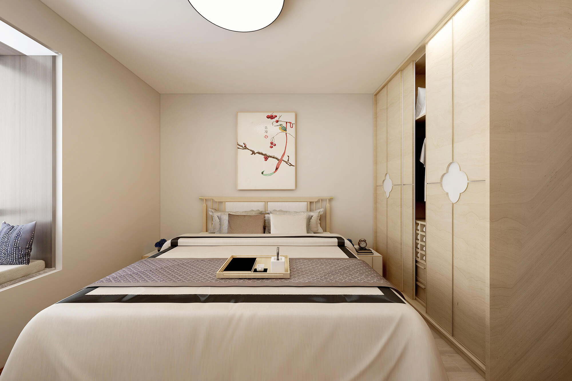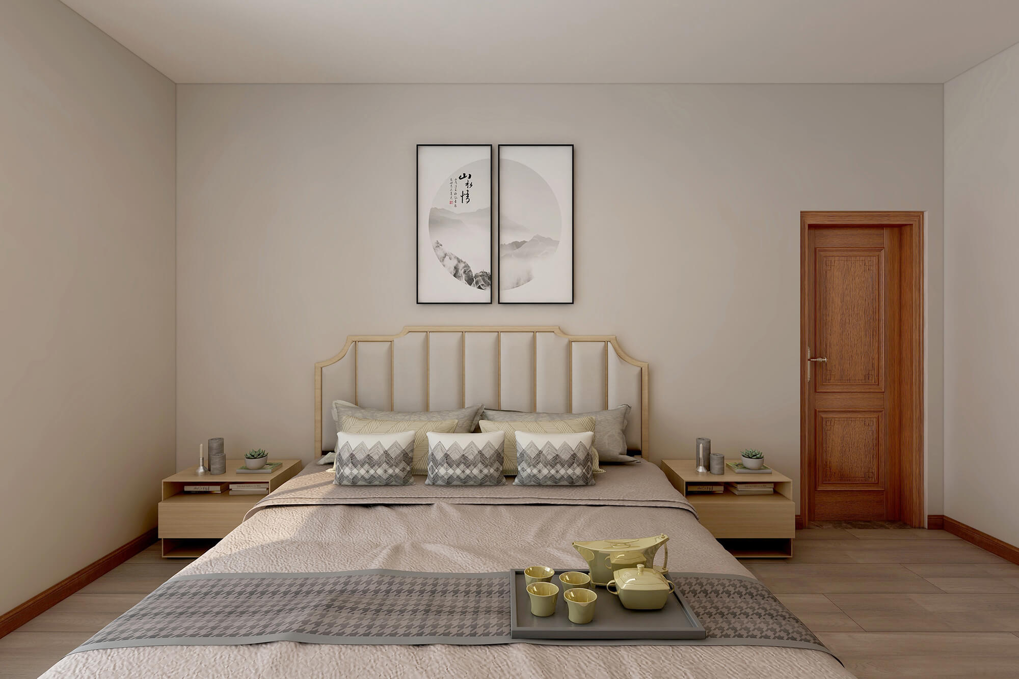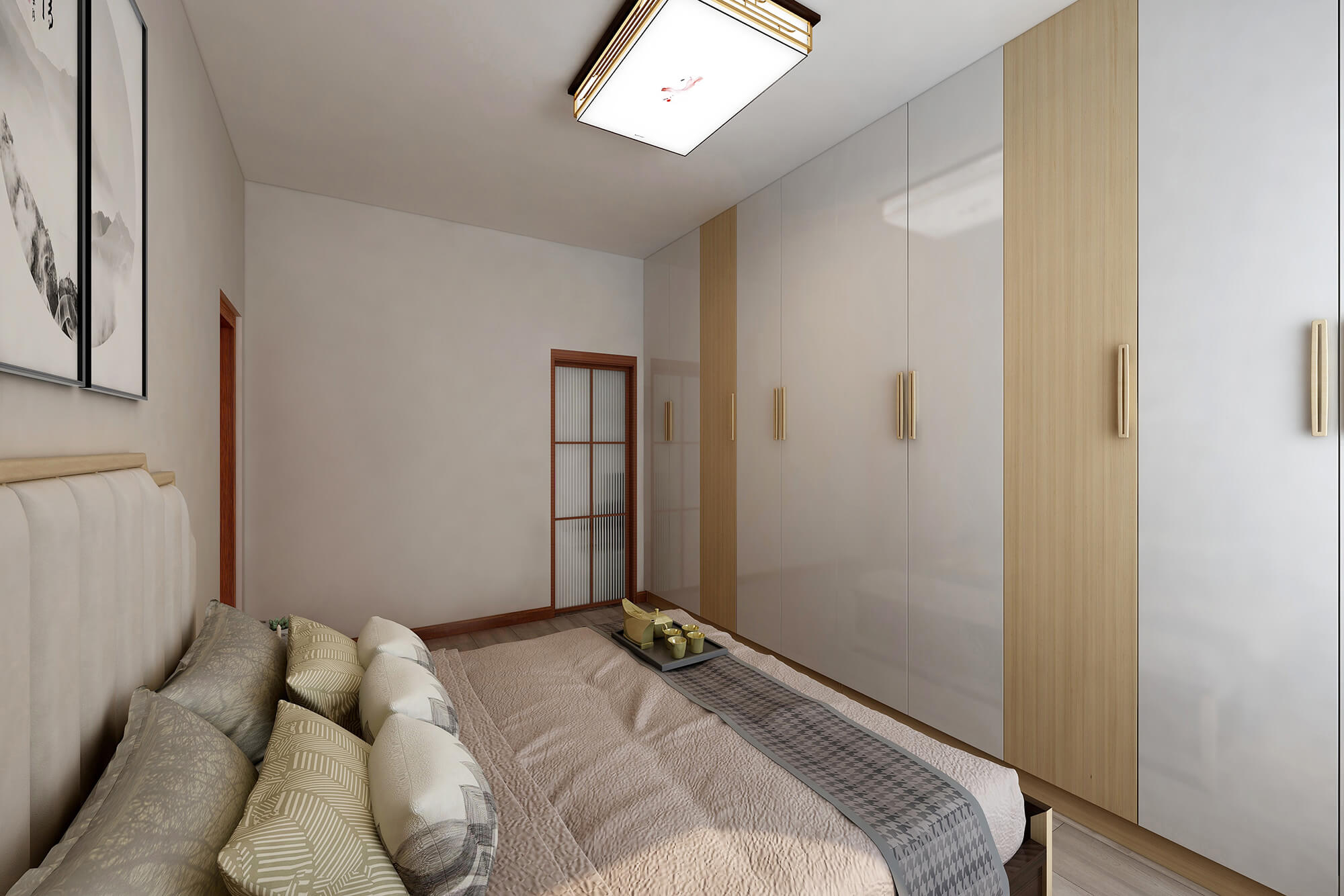 本案為5房2廳2衛,總面積155㎡。業主喜歡禪意新中式的感覺,所以整體色彩搭配大都采用極簡的淺色原木系來營造一種寧靜愜意的感覺,營造個性家居生活空間。