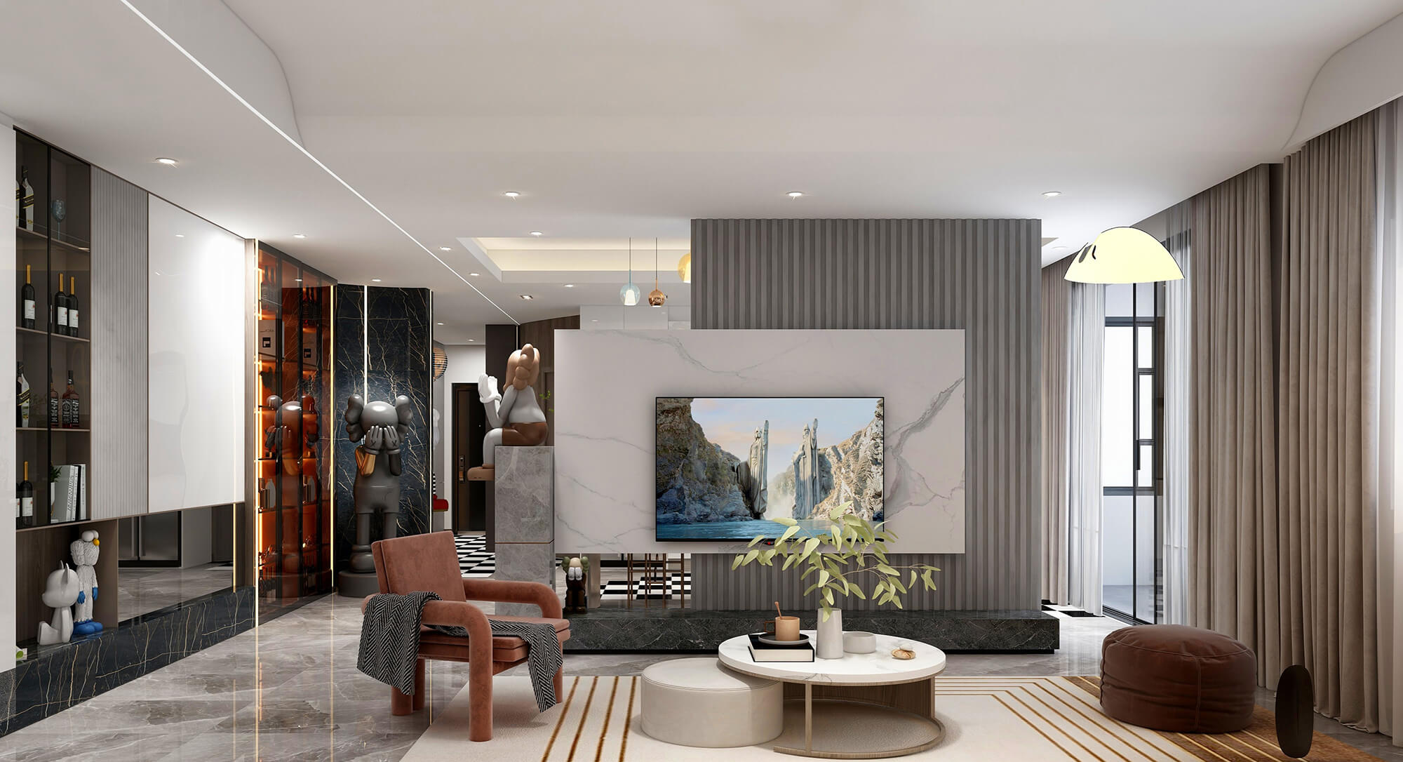 本案戶型為:3房2廳2衛,總面積113㎡。本案設計師通過簡練、流暢而清晰的動線規劃,在空間之外賦予更多的品位與內涵,提升空間品質的同時,創造出具有極高鑒賞性的藝術感染力。