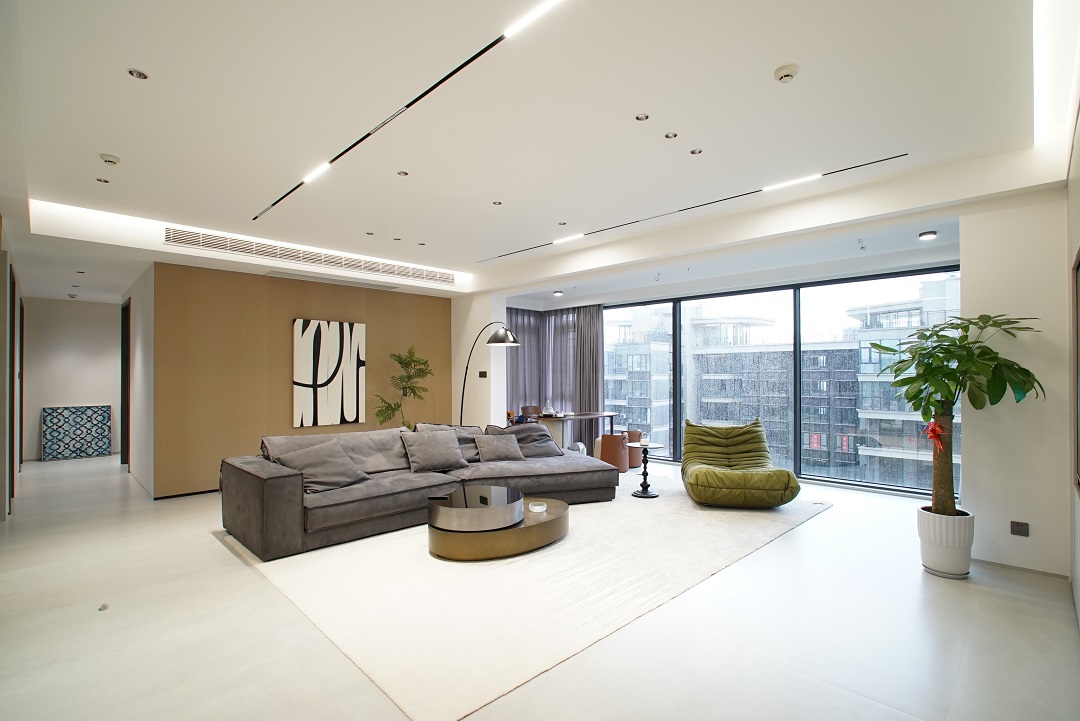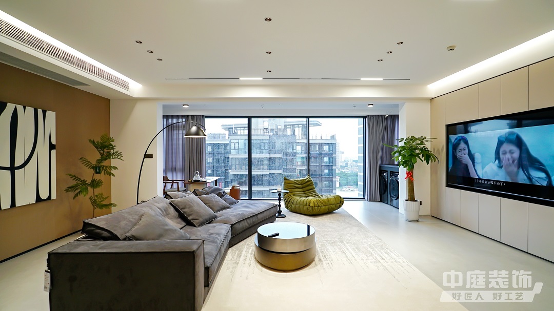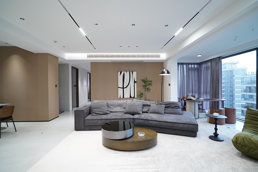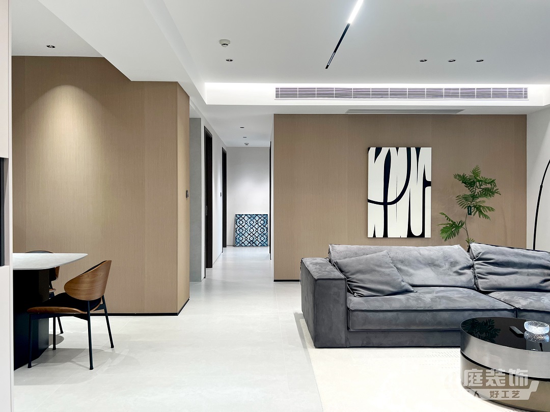 西園潤府136㎡的現代簡約風三居室,大橫廳+無主燈的設計,動區空間給人感覺寬敞又明亮。整體以高級灰為主基調的設計,加上優雅的軟裝設計,也讓整個家變得更加舒適有質感。