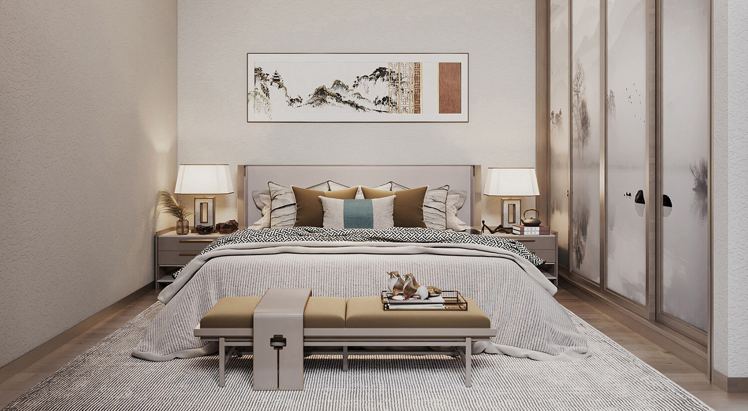 瀏覽量:592本案例戶型為:6房2廳3衛(wèi),總面積216㎡。這是一個新中式風(fēng)格案例,新中式風(fēng)格的設(shè)計手法強調(diào)傳統(tǒng)文化與現(xiàn)代設(shè)計的融合,注重空間布局和裝飾元素的平衡,打造出具有韻味和現(xiàn)代感的空間。