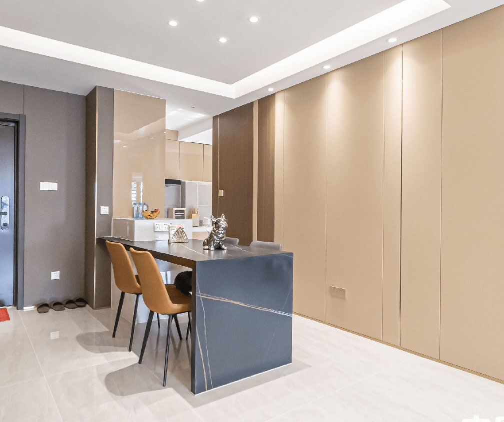 無論是石英石也好、瓷磚也好,還沒有哪種材料,既能達到大理石的美貌,又能實現堅固耐用的功能,直到巖板的出現,交織出大氣而端雅的秩序美與層次感,為空間的內在精神找到恰到好處的外在表現形式,在創新中演繹生活的格調。