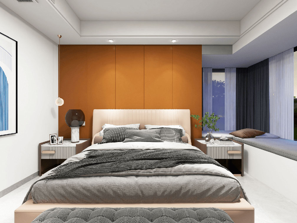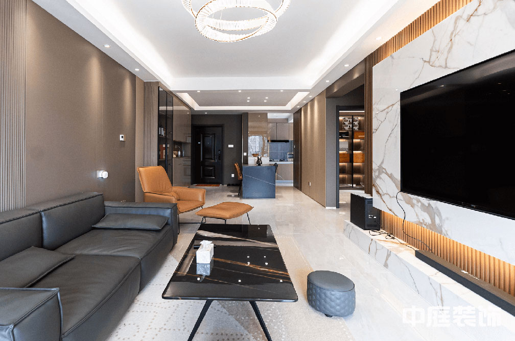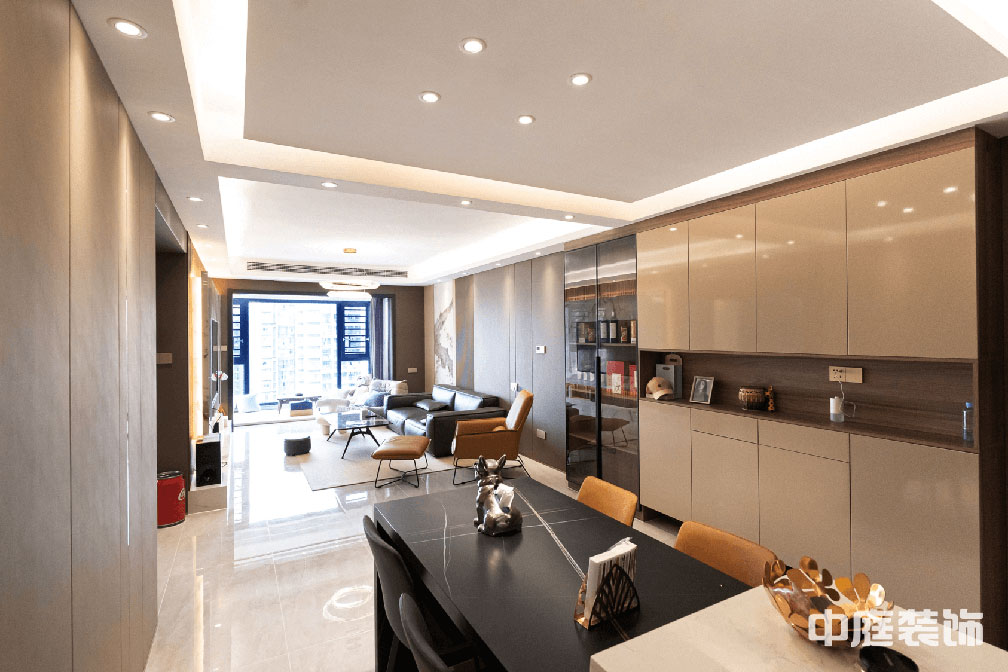 造型簡潔,線條流暢的家具組合搭配,營造出穩定、協調、溫馨的空間感受,滿足現代年輕家庭的輕奢需求。
