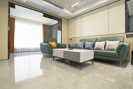 整個空間變得更加寬闊通透,視野也有一定的拓展,藍色系的空間在整個空間當中變得更加大氣,再加上灰綠色的布藝沙發,灰色的茶幾在色調上有的用的沖擊性豐富了整個空間當中的層次。